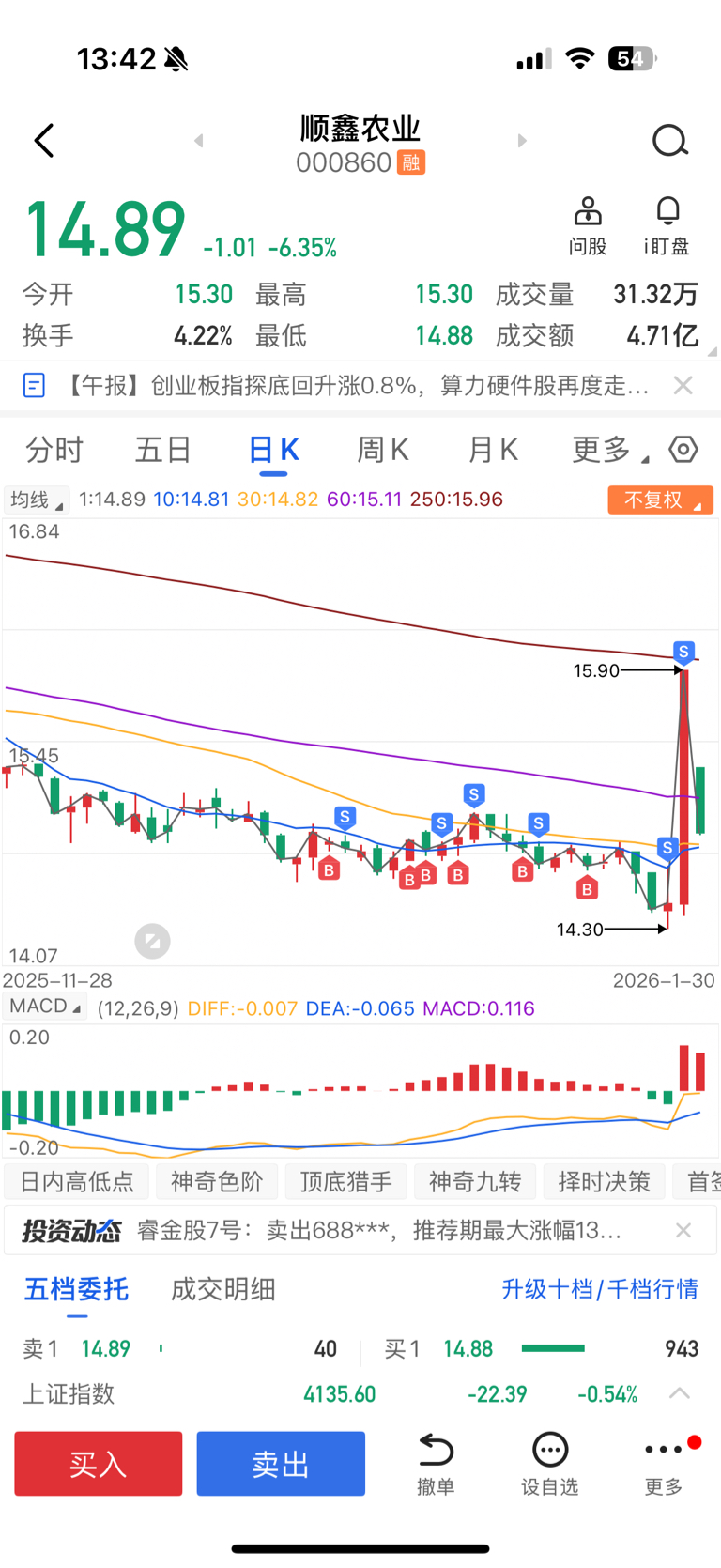 $顺鑫农业(SZ000860)$ 我准备买回来了