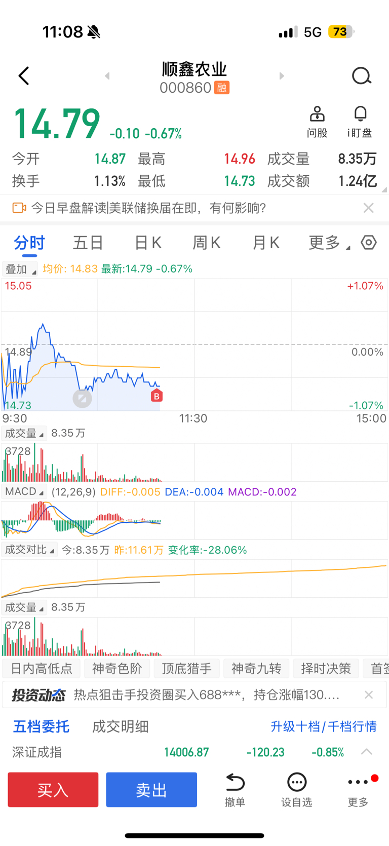 $顺鑫农业(SZ000860)$ 今天又买回了1/3。不管对错了,比我卖的价格便宜