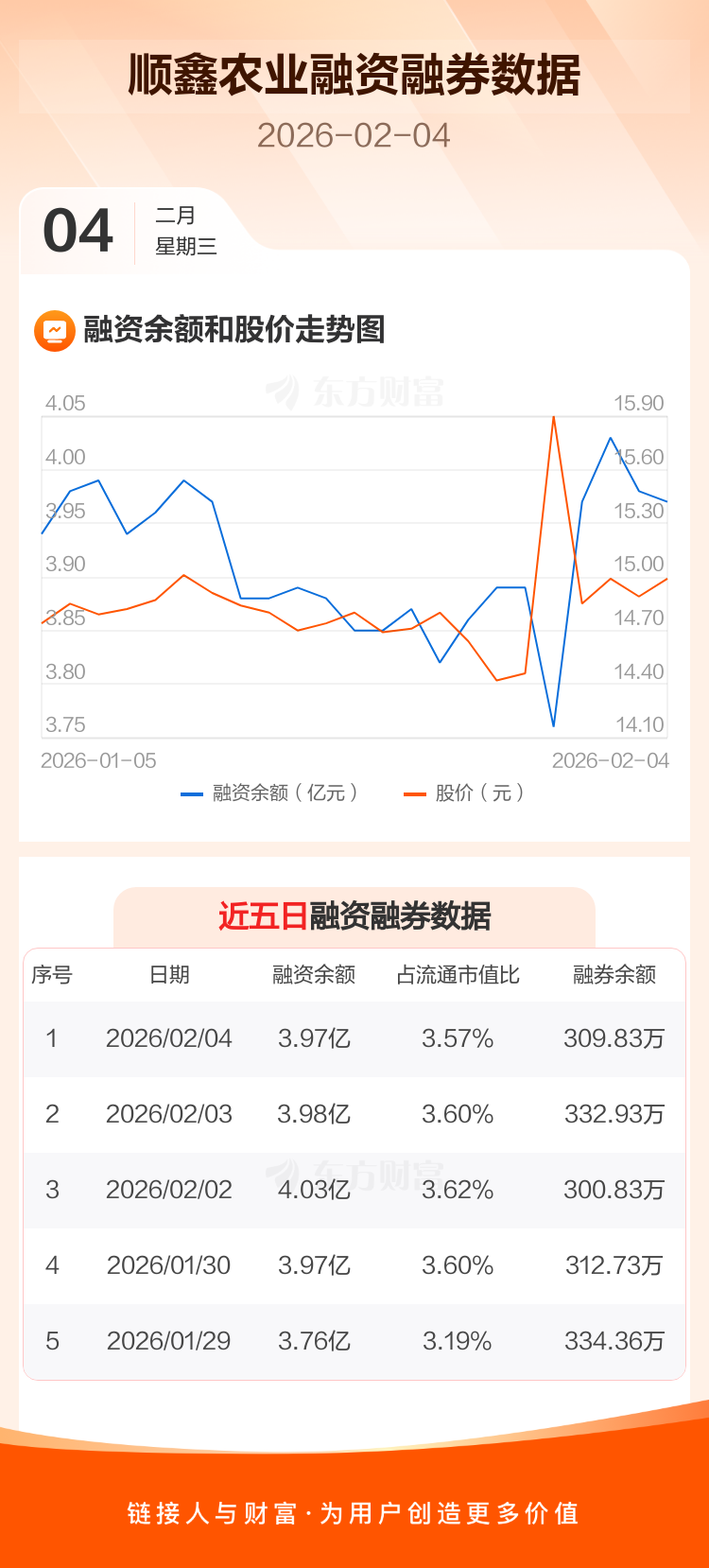 交易所最新数据显示,顺鑫农业于2026年2月4日获融资买入2019.66万元,融资偿还2071.37万元,当日融资净偿还51.72万元。目前,该股融资余额3.97亿,占流通市值比例为3.57%。