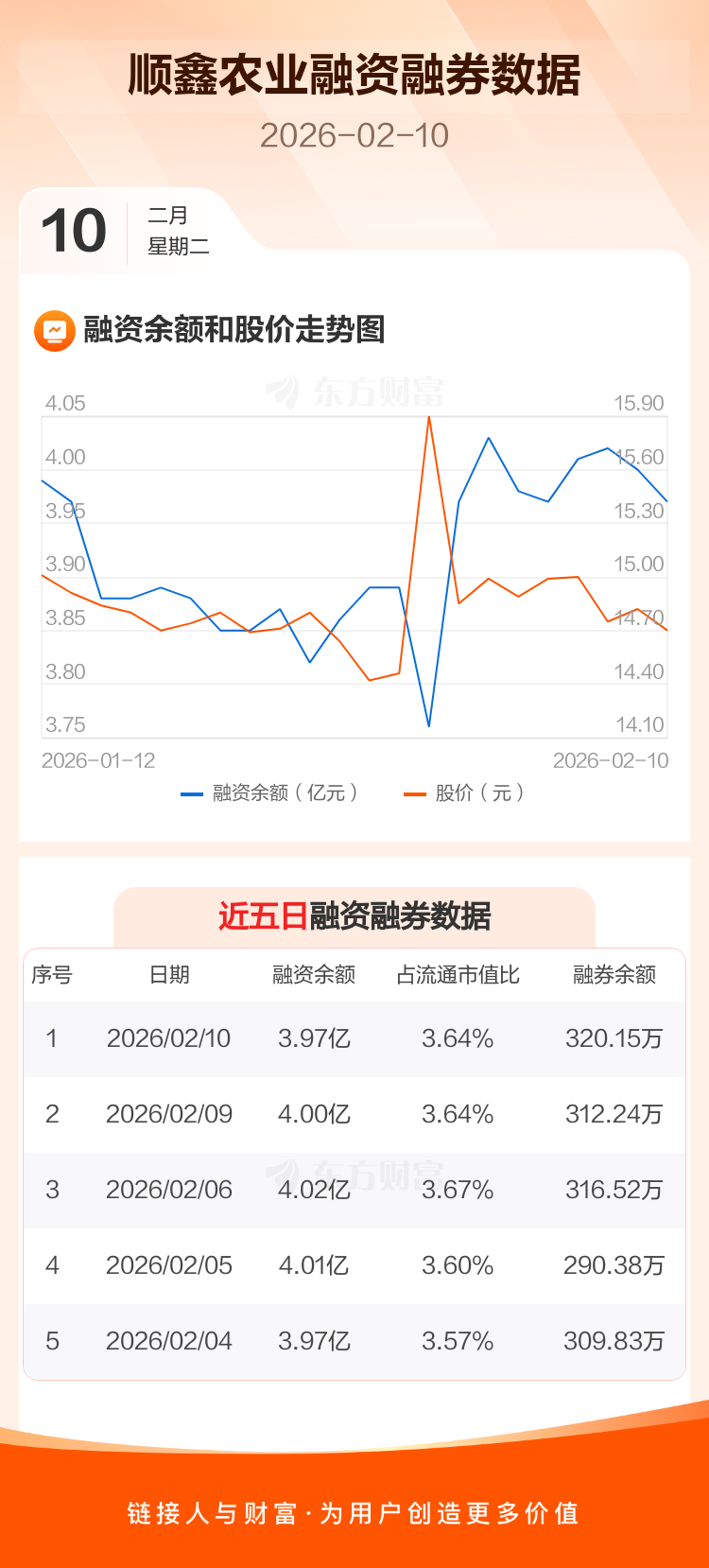 交易所最新数据显示,顺鑫农业于2026年2月10日获融资买入1622.10万元,融资偿还1922.08万元,当日融资净偿还299.98万元。目前,该股融资余额3.97亿,占流通市值比例为3.64%。