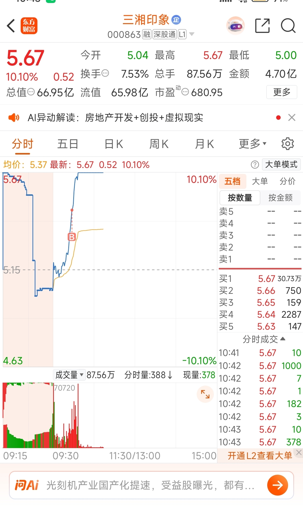 $三湘印象(SZ000863)$ 一进二过头,干就完事了