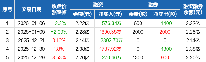 三湘印象:融资净偿还576.34万元,融资余额2.22亿元(01-06)