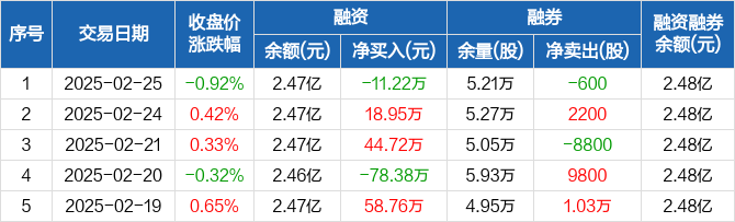 张裕A:融资净偿还11.22万元,融资余额2.47亿元(02-25)