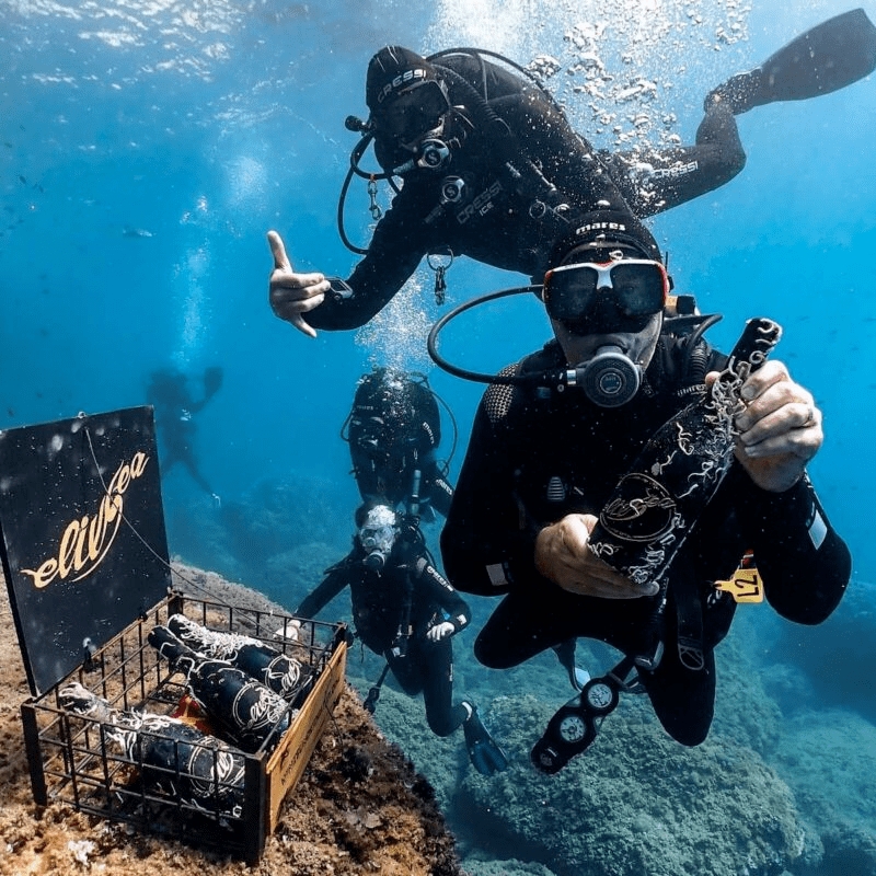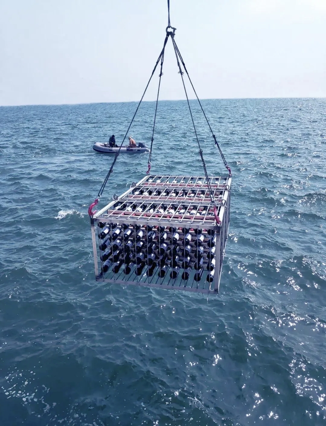 在海里用专门设计的罐体完成发酵、熟化,利用海水压力、低光、恒温与潮汐运动,改变酵母代谢与自溶路径,从而生成不同于陆地酒窖的风味。