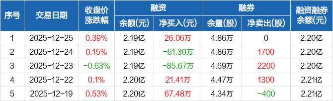 张裕A:融资净买入26.06万元,融资余额2.19亿元(12-25)