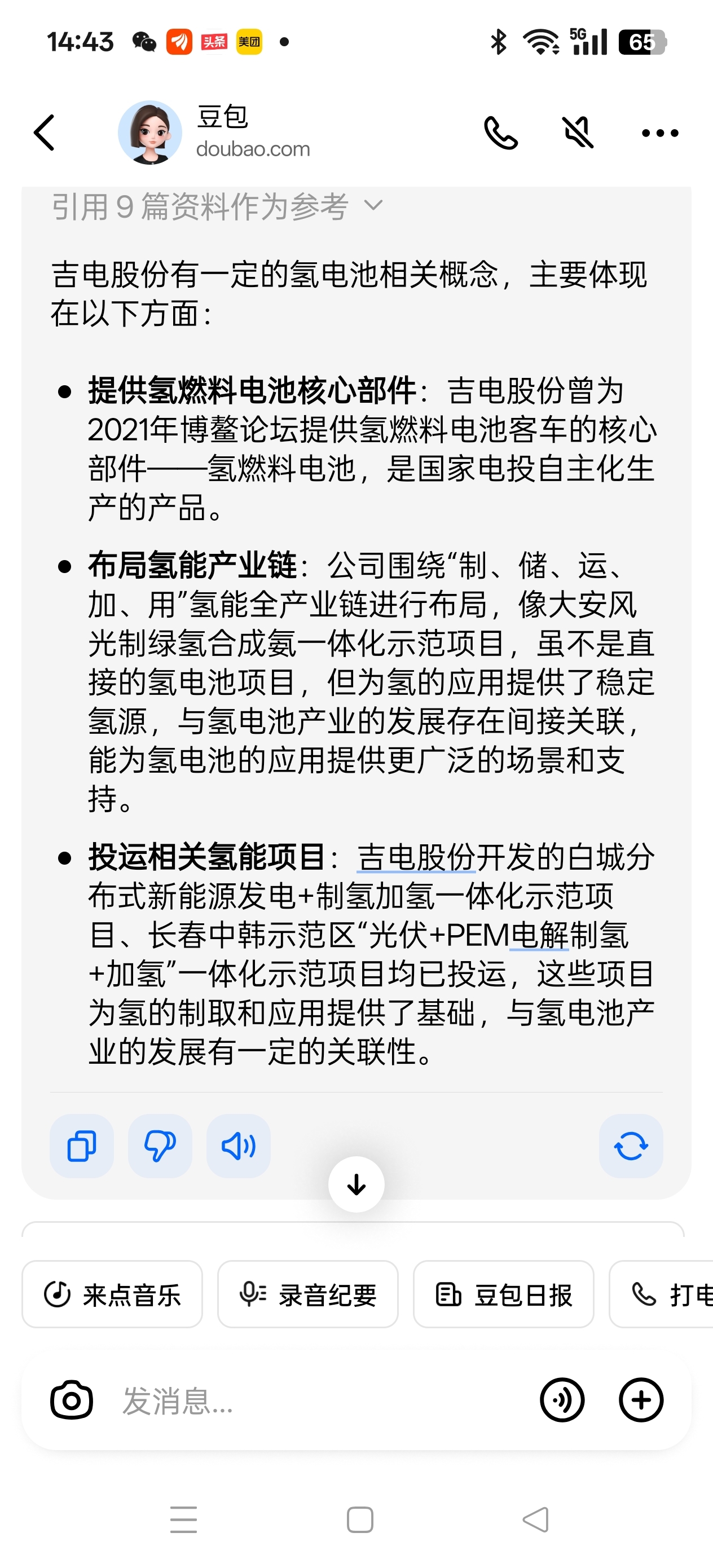 吉电股份与氢电池方面有着千丝万缕连系。