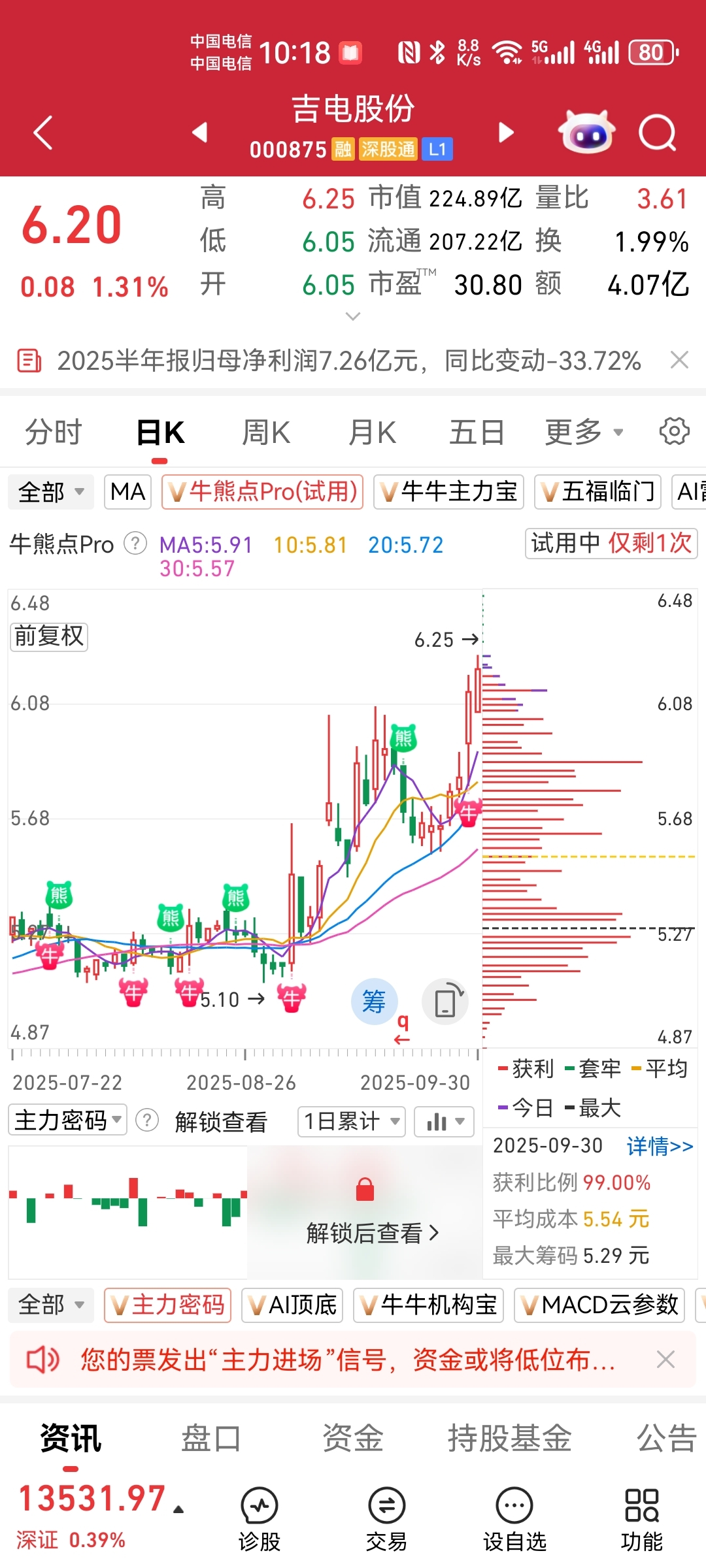 套牢筹码已获解放!想获利了结的请下车,想继续获利的坚持下去!看好吉电的欢迎入埸!