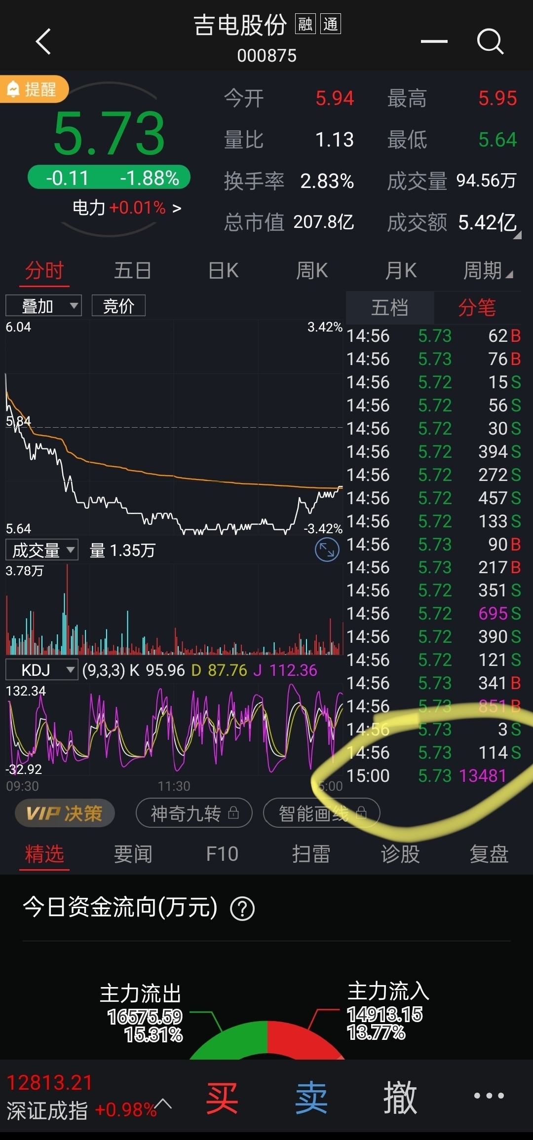 $吉电股份(SZ000875)$ 13481要散4块8毛1拉鸡等你