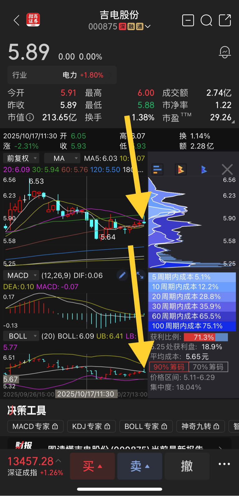 $吉电股份(SZ000875)$ 大家千万别碰,120分钟上影绿,分明想往下打,5.67开始往下干就对了