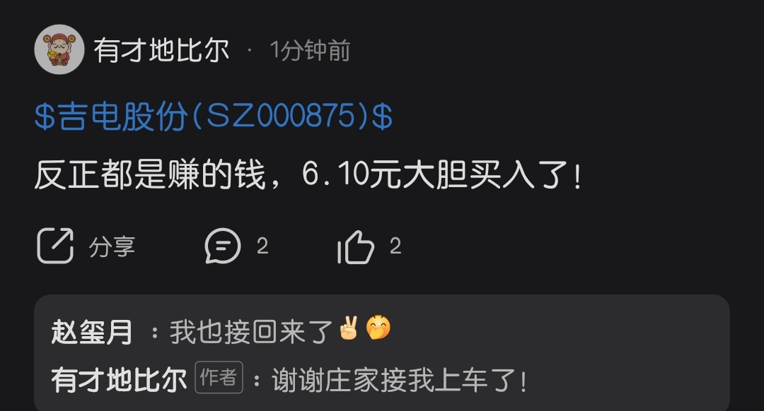 温馨提示: 1.根据《证券法》规定,禁止编造、传播虚假信息或者误导性信息,扰乱证券市场;2.用户在本社区发表的所有资料、言论等仅代表个人观点,与本网站立场无关,不对您构成任何投资建议。用户应基于自己的独立判断,自行决定证券投资并承担相应风险。《东方财富社区管理规定》