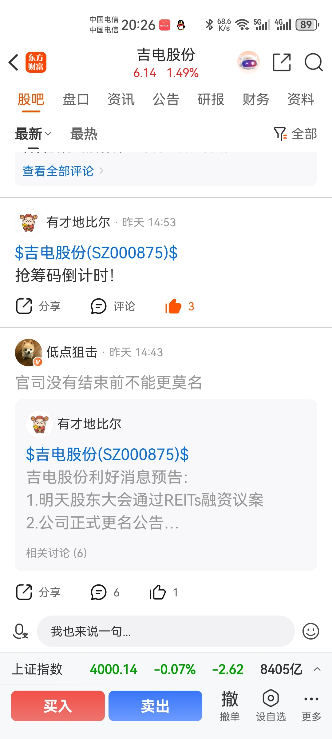 温馨提示: 1.根据《证券法》规定,禁止编造、传播虚假信息或者误导性信息,扰乱证券市场;2.用户在本社区发表的所有资料、言论等仅代表个人观点,与本网站立场无关,不对您构成任何投资建议。用户应基于自己的独立判断,自行决定证券投资并承担相应风险。《东方财富社区管理规定》