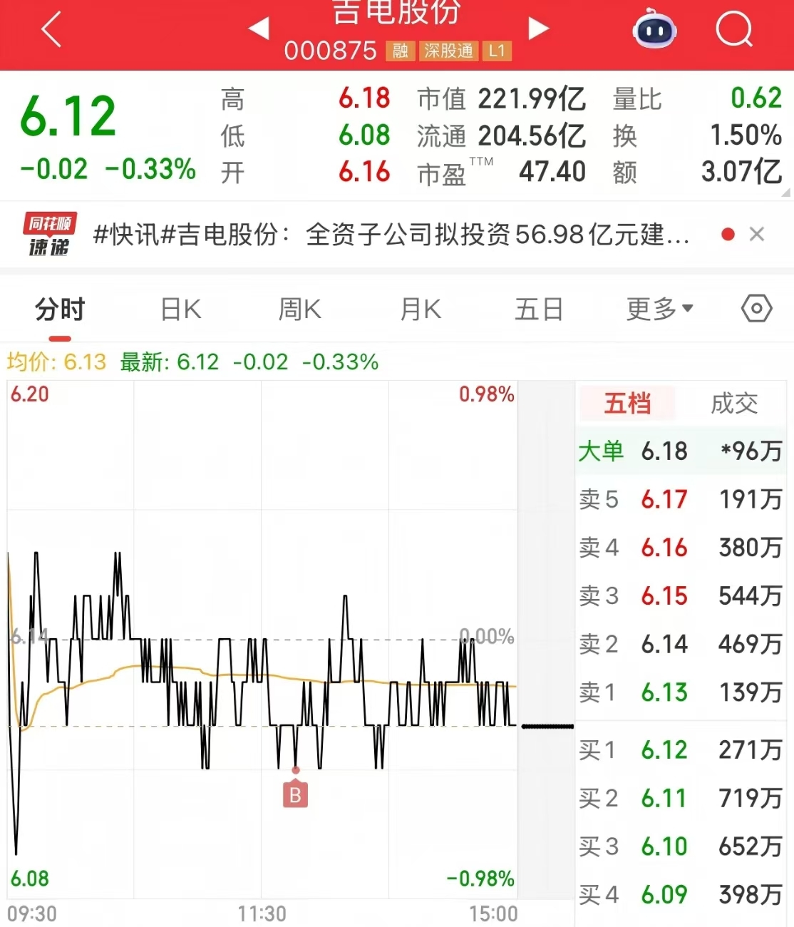 $吉电股份(SZ000875)$ 11.13出海锅,入吉电