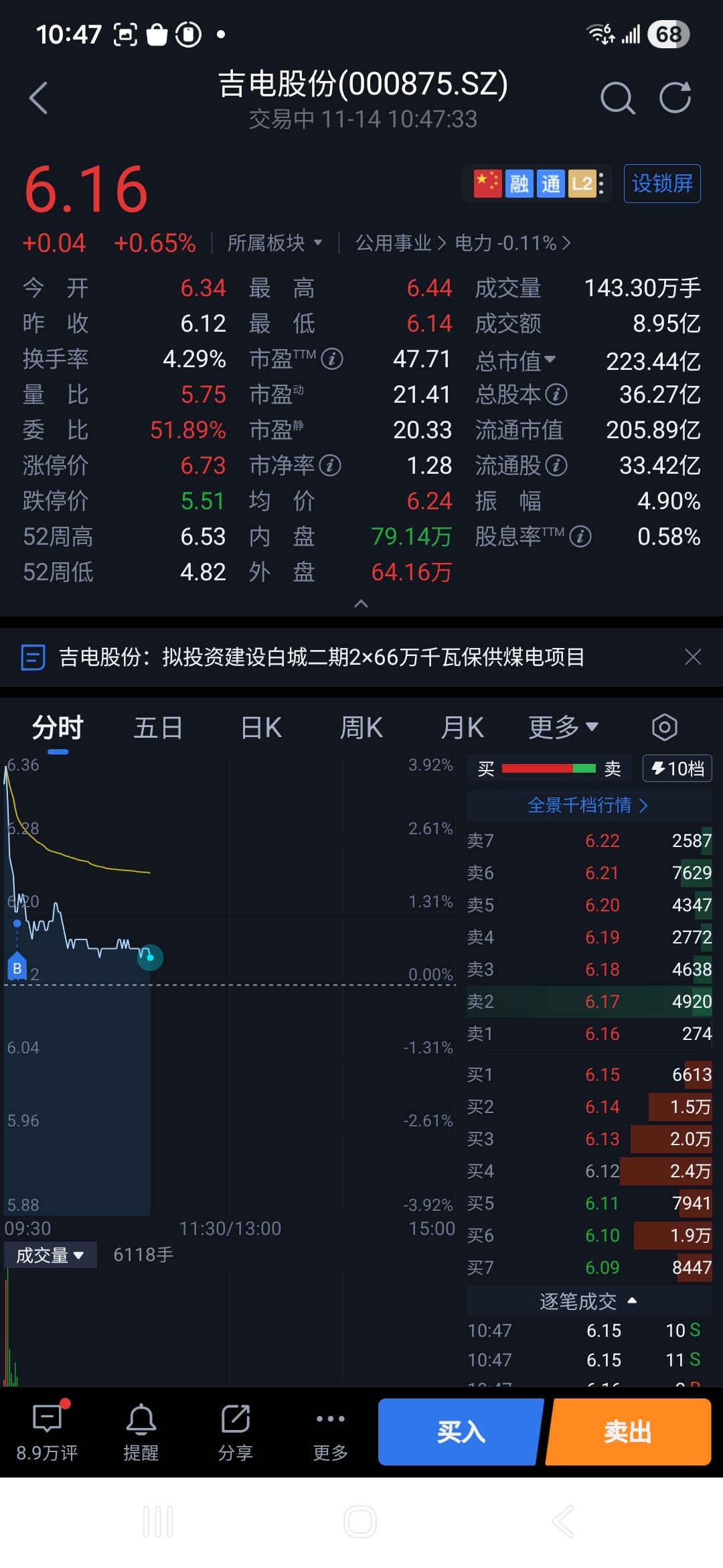 $吉电股份(SZ000875)$ 还好砸的快,要不套的更高了