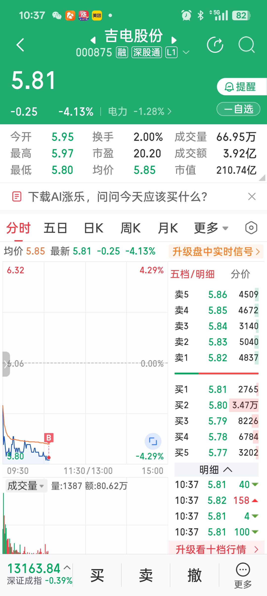 $吉电股份(SZ000875)$ 今早怎么会跌4个点?