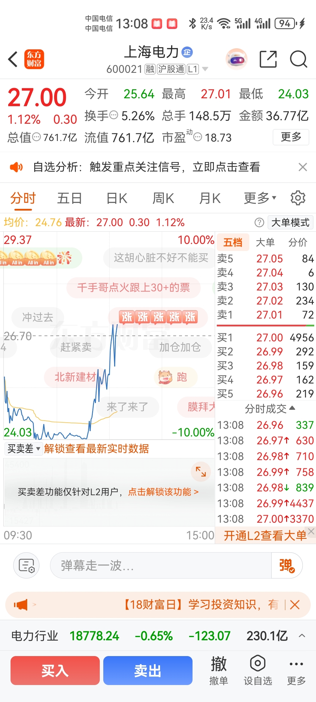 早盘借上海电力打压收集筹码,现在如何?