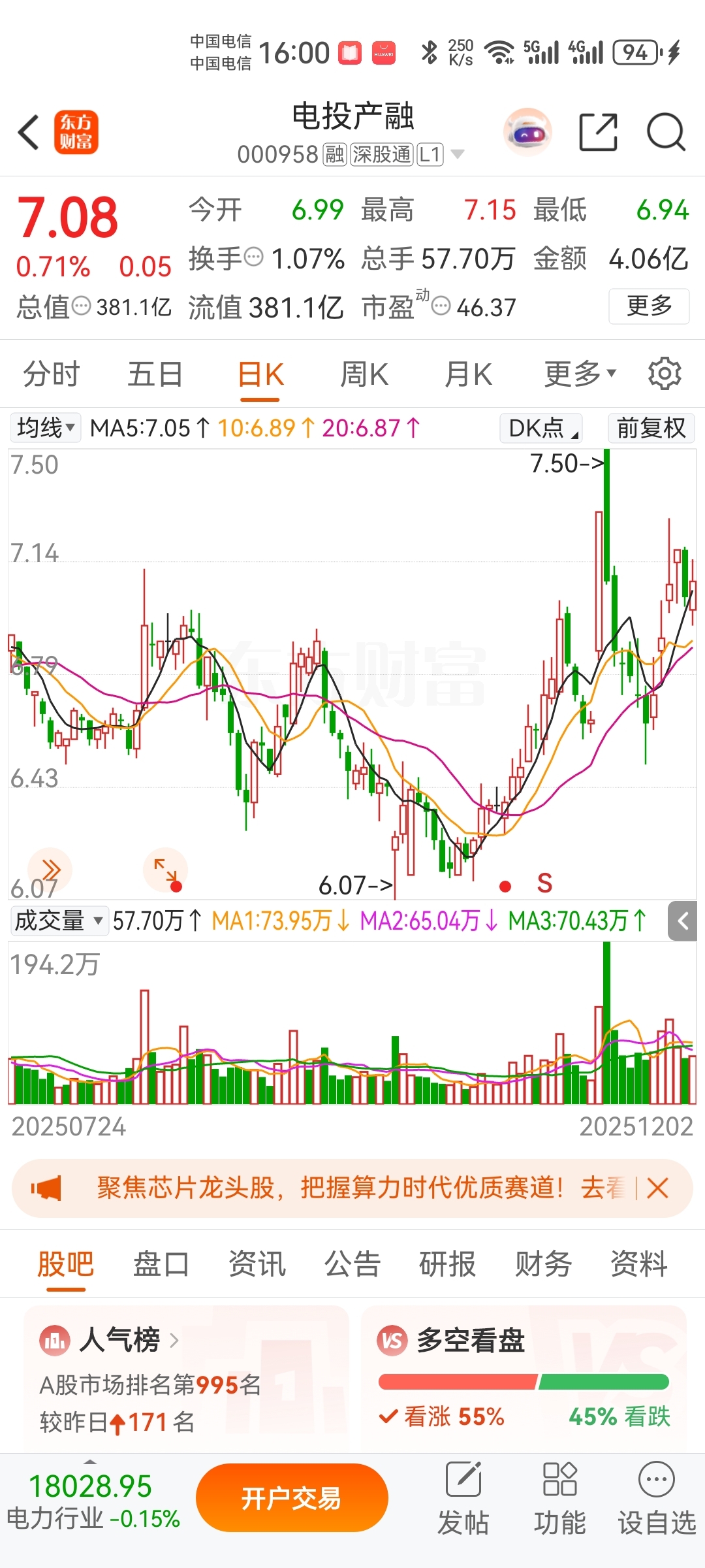 持有两支股票,都是国电投的儿子。希望你们都争气!争当国电投的!