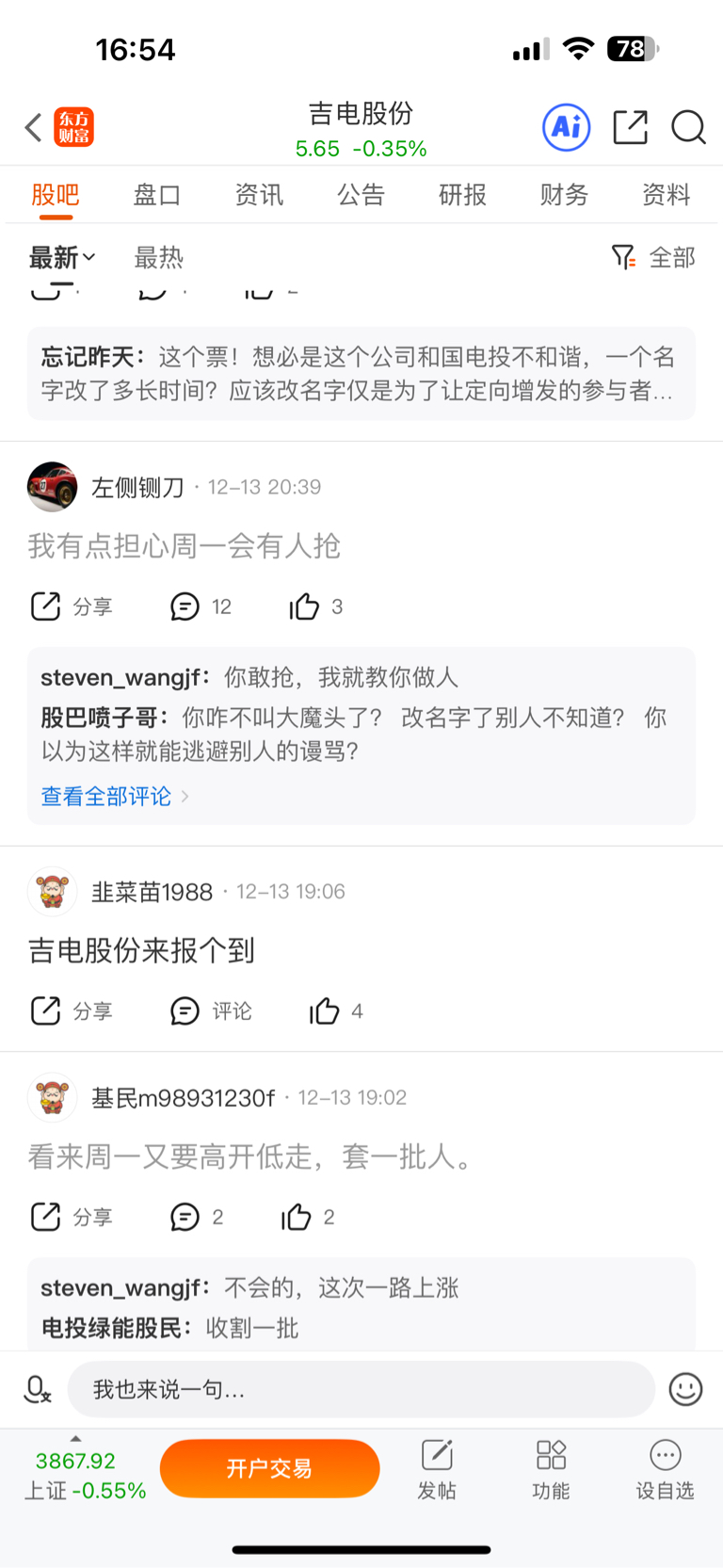 $吉电股份(SZ000875)$ 这个货就是之前的大魔头他改名字了,说担心会抢筹!哈哈哈哈哈哈哈哈哈哈哈,今天高开低走!哈哈哈哈哈哈 你们记住他发言,绝对反着走!不骂他天理难容