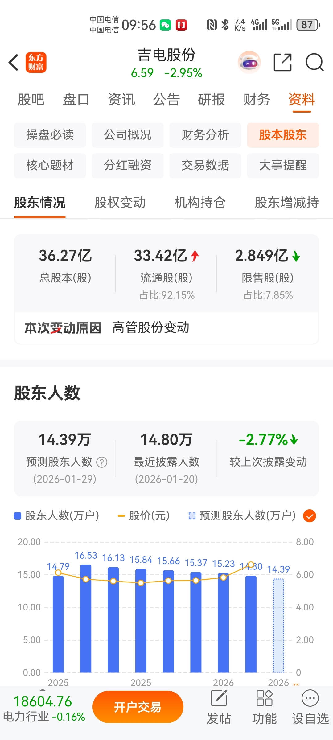 大数据统计,吉电股份股东户数已降至14.39万户,筹码进一步集中。现在买入,庄家