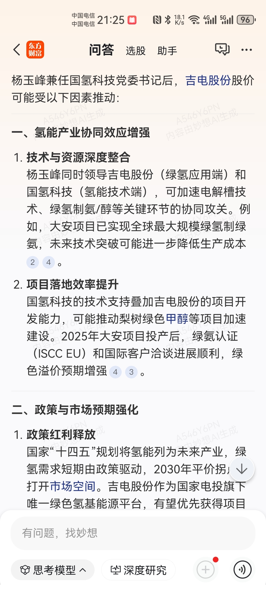 杨玉峰兼任国氢科技一把手后,吉电股价可能受以下因素推动!