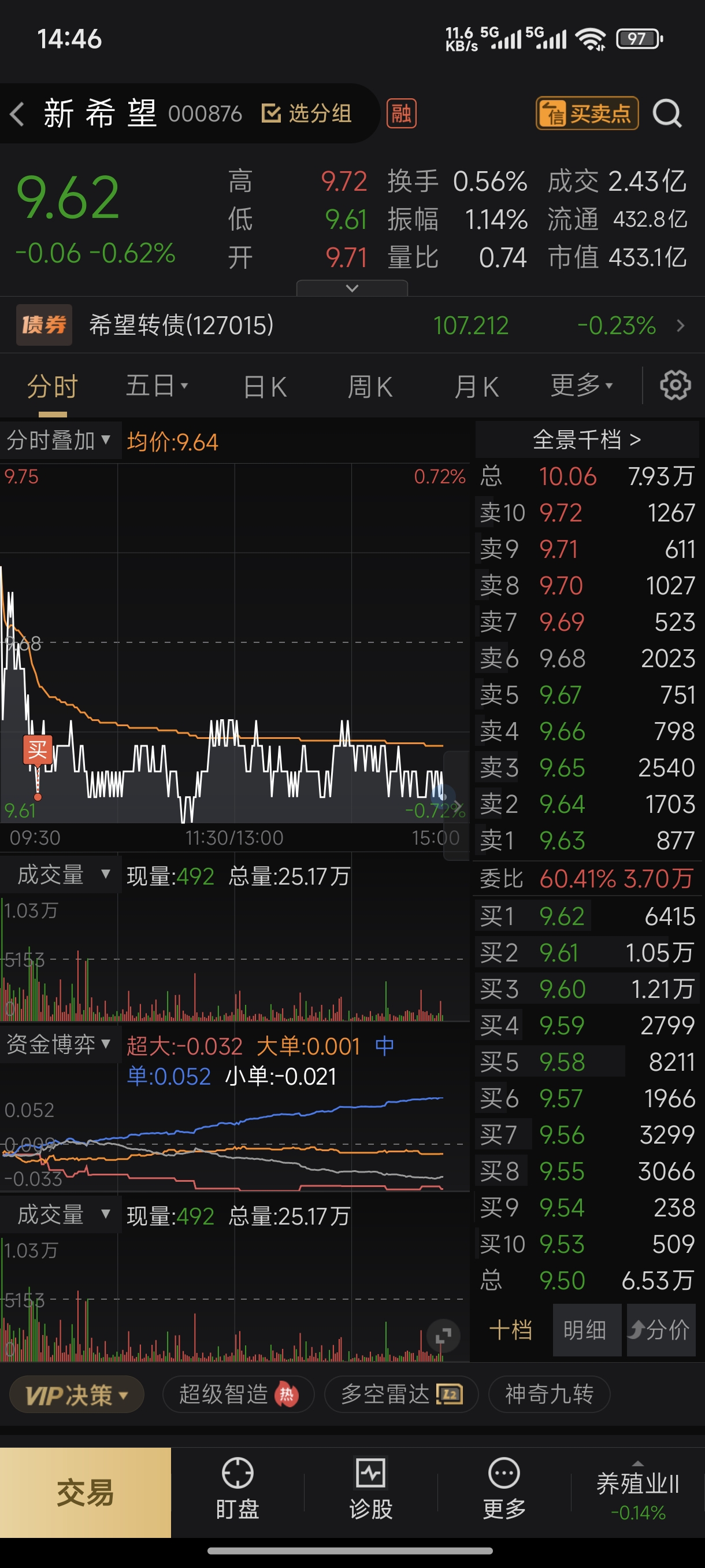 $新 希 望(SZ000876)$ 大家好,我已经了,主力可以拉了