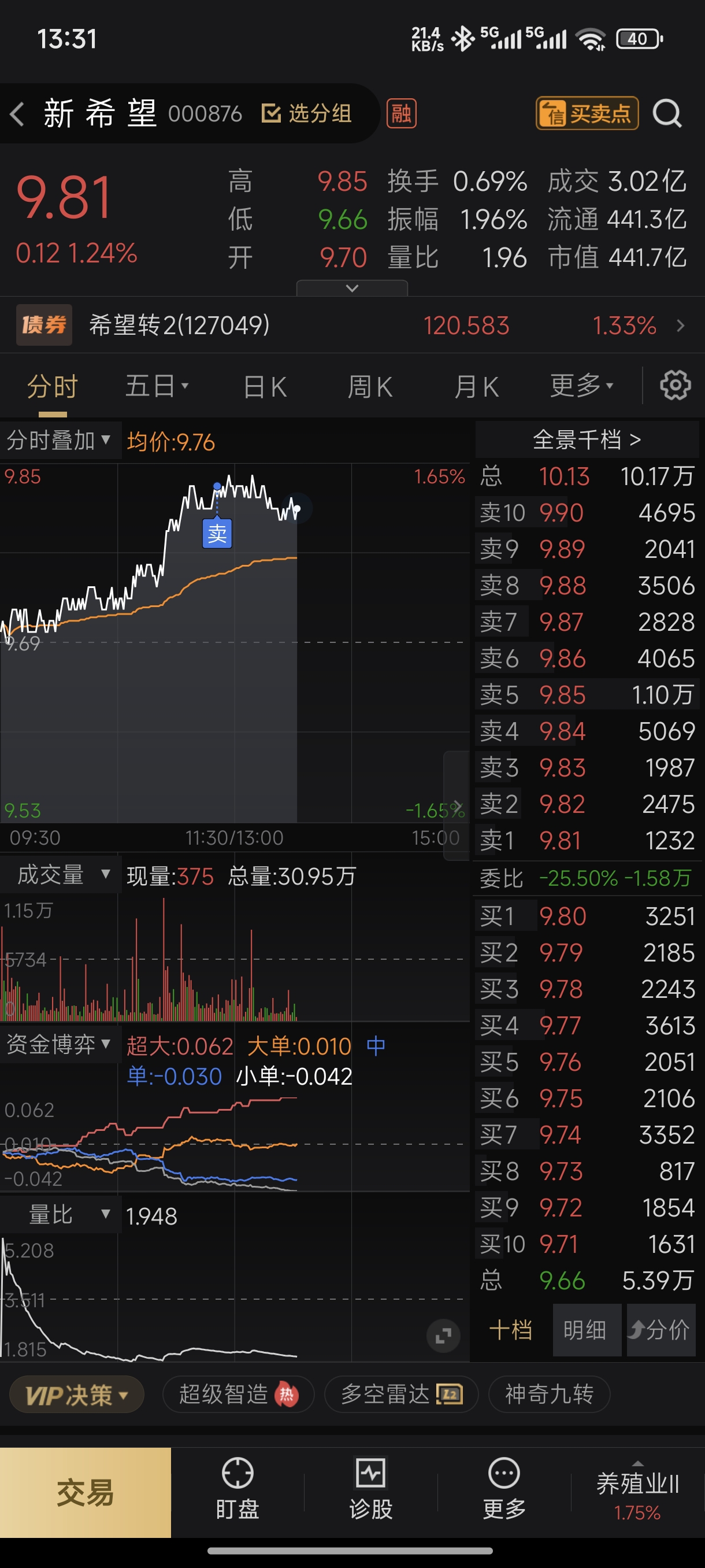 $新 希 望(SZ000876)$ 高抛低吸,等下来了再买回来
