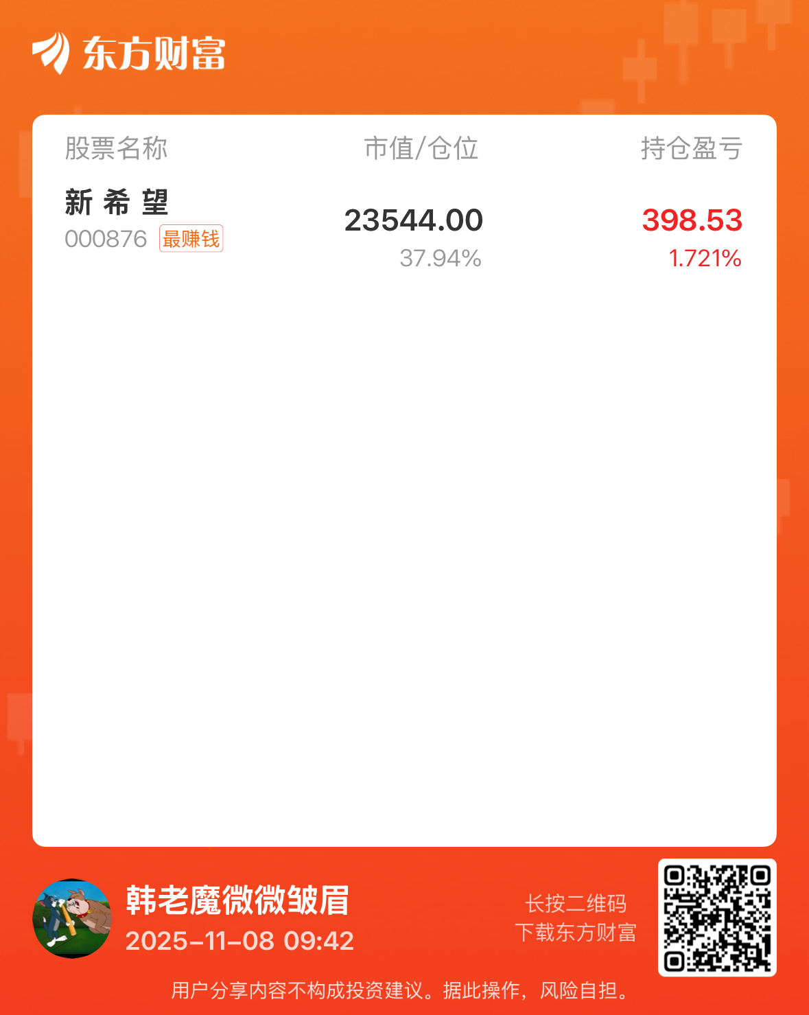 温馨提示: 1.根据《证券法》规定,禁止编造、传播虚假信息或者误导性信息,扰乱证券市场;2.用户在本社区发表的所有资料、言论等仅代表个人观点,与本网站立场无关,不对您构成任何投资建议。用户应基于自己的独立判断,自行决定证券投资并承担相应风险。《东方财富社区管理规定》