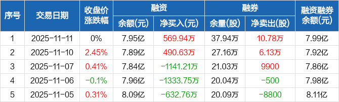 新希望:融资净买入569.94万元,融资余额7.95亿元(11-11)