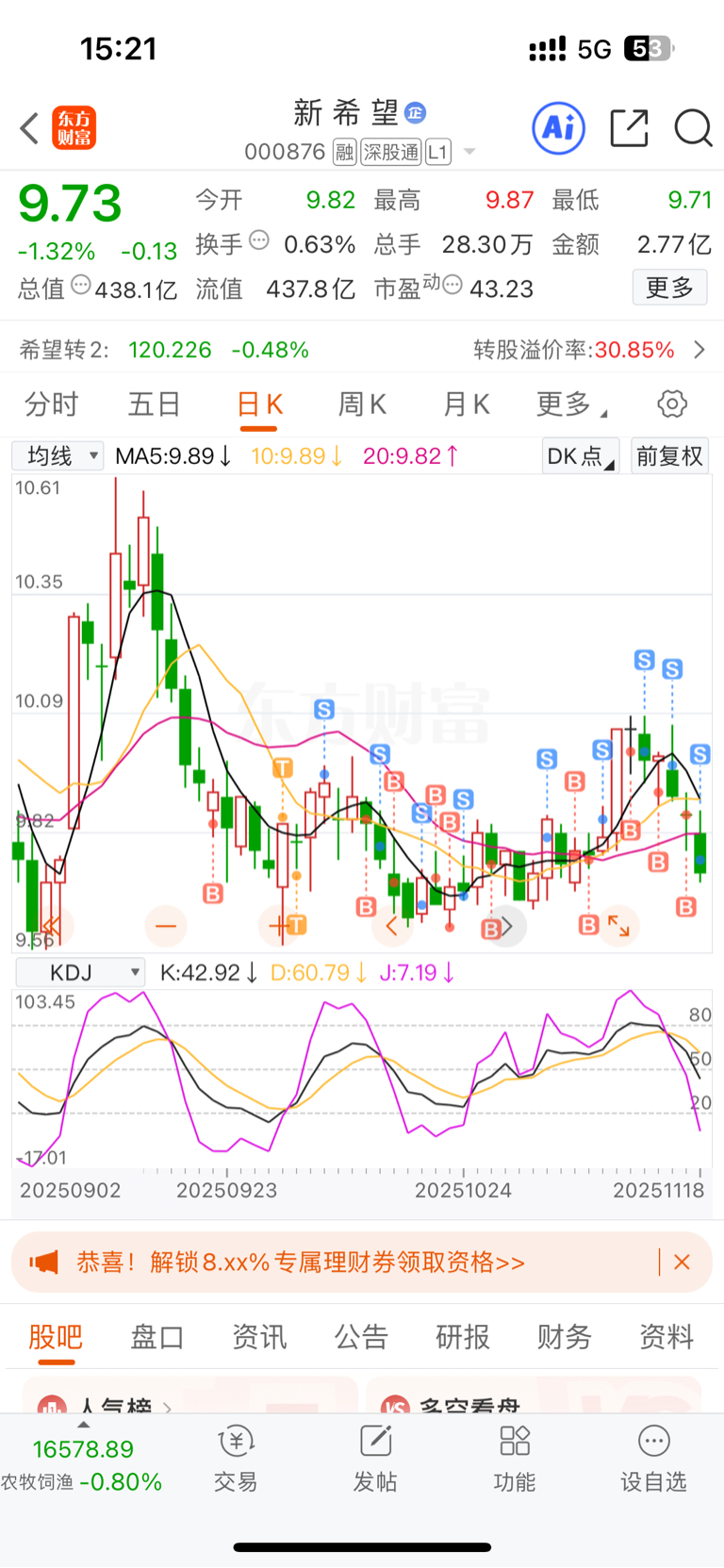 $新 希 望(SZ000876)$ 好的,我清仓了,你可以拉升了。