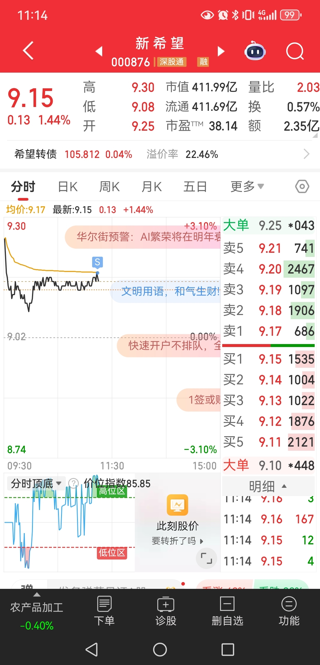 $新 希 望(SZ000876)$ 谢谢,先落袋为安
