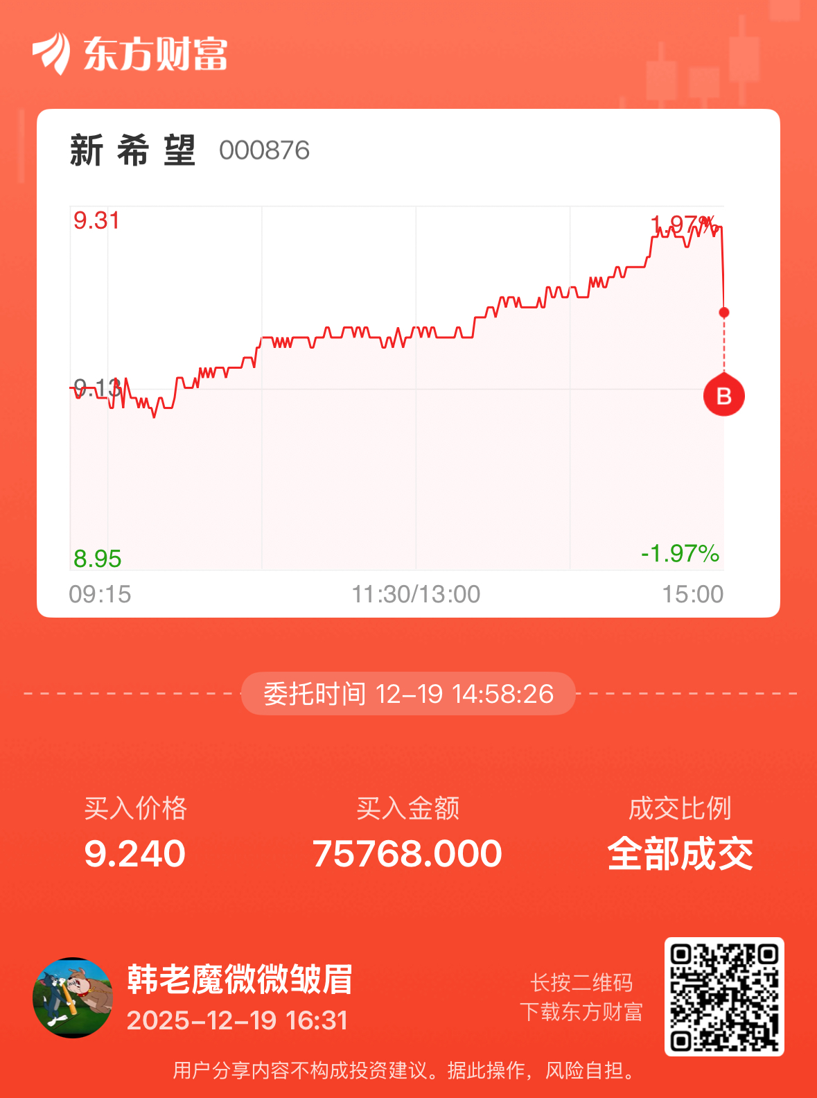 $新 希 望(SZ000876)$ 盘尾炸盘了,天呐