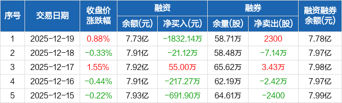 新希望:融资净偿还1832.14万元,融资余额7.73亿元(12-19)