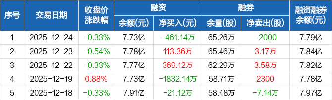 新希望:融资净偿还461.14万元,融资余额7.73亿元(12-24)