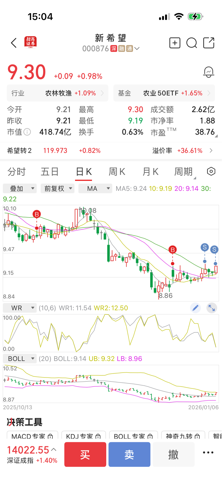 $新 希 望(SZ000876)$ 今天割了老刘的没希望,这就是一只垃圾票,想在里面赚钱是不可能的,实在要买猪肉板块换股去牧原股份,我23年就开始建仓,这票你想做波段都很难,涨的少跌的多,友情提示换股