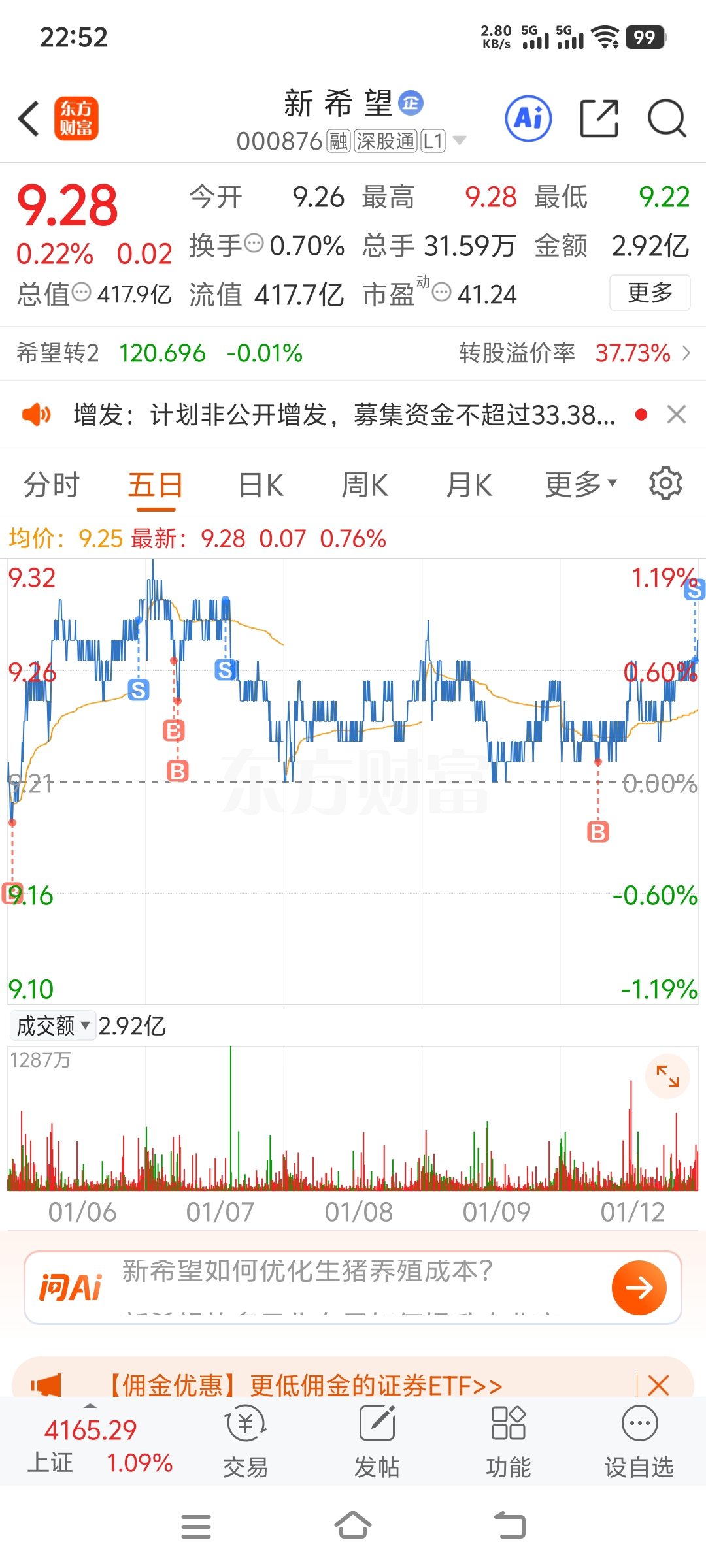 $新 希 望(SZ000876)$ 尾盘猛涨一分全天猛涨两分 我在优质股里躲牛市