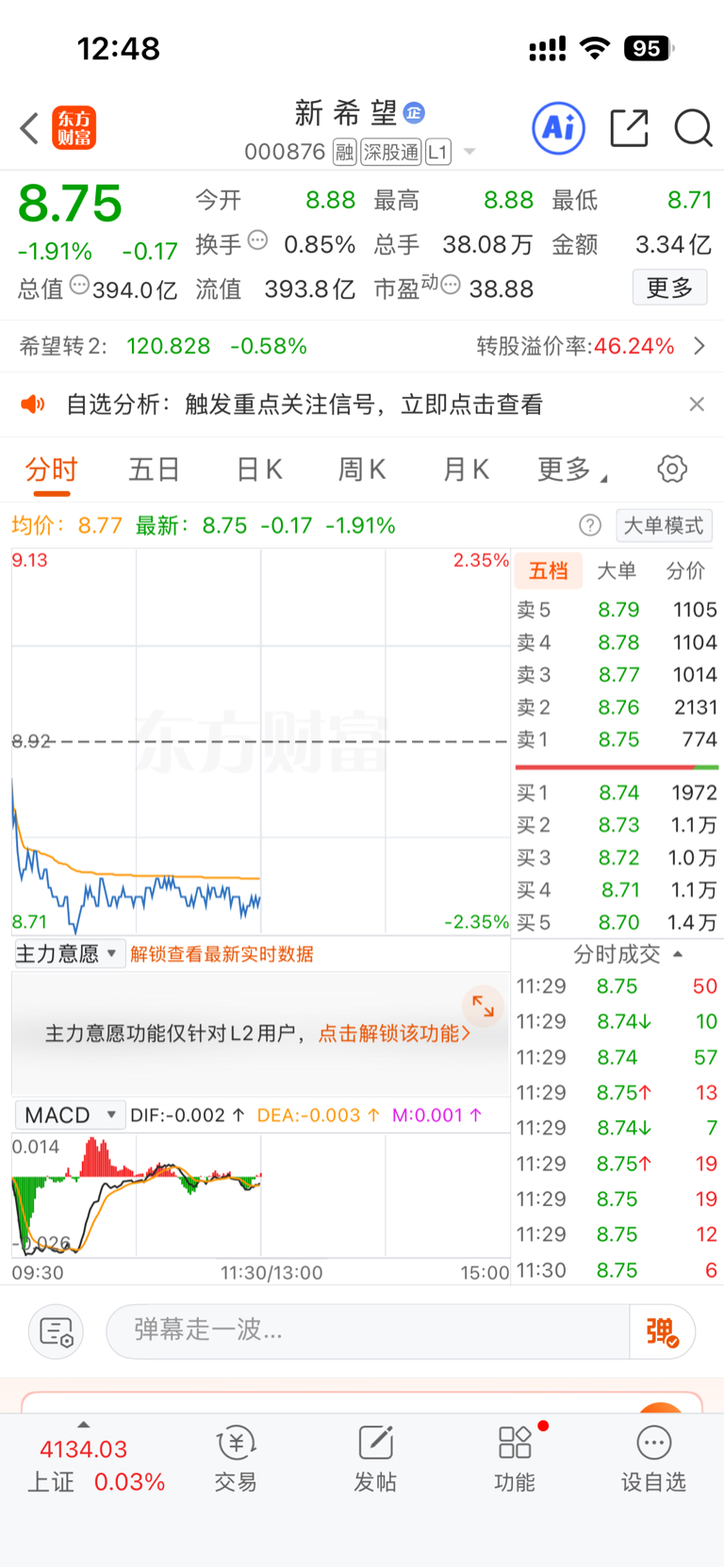 $新 希 望(SZ000876)$ 有单子托盘,一路加仓一路加仓目前亏11个点,有点想跑了!