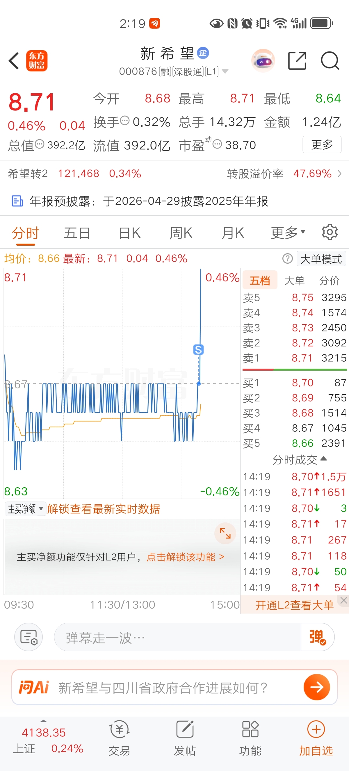 $新 希 望(SZ000876)$ 是不是只有我卖他才会拉
