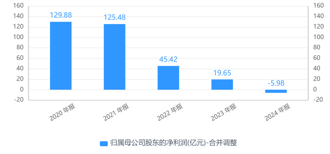 回顾过往财报,天山股份净利润连续四年下降,并且去年由盈转亏。2024年,公司实现营业收入869.95亿元,同比下降18.98%;归属于上市公司股东的净利润-5.98亿元,同比下降130.45%。