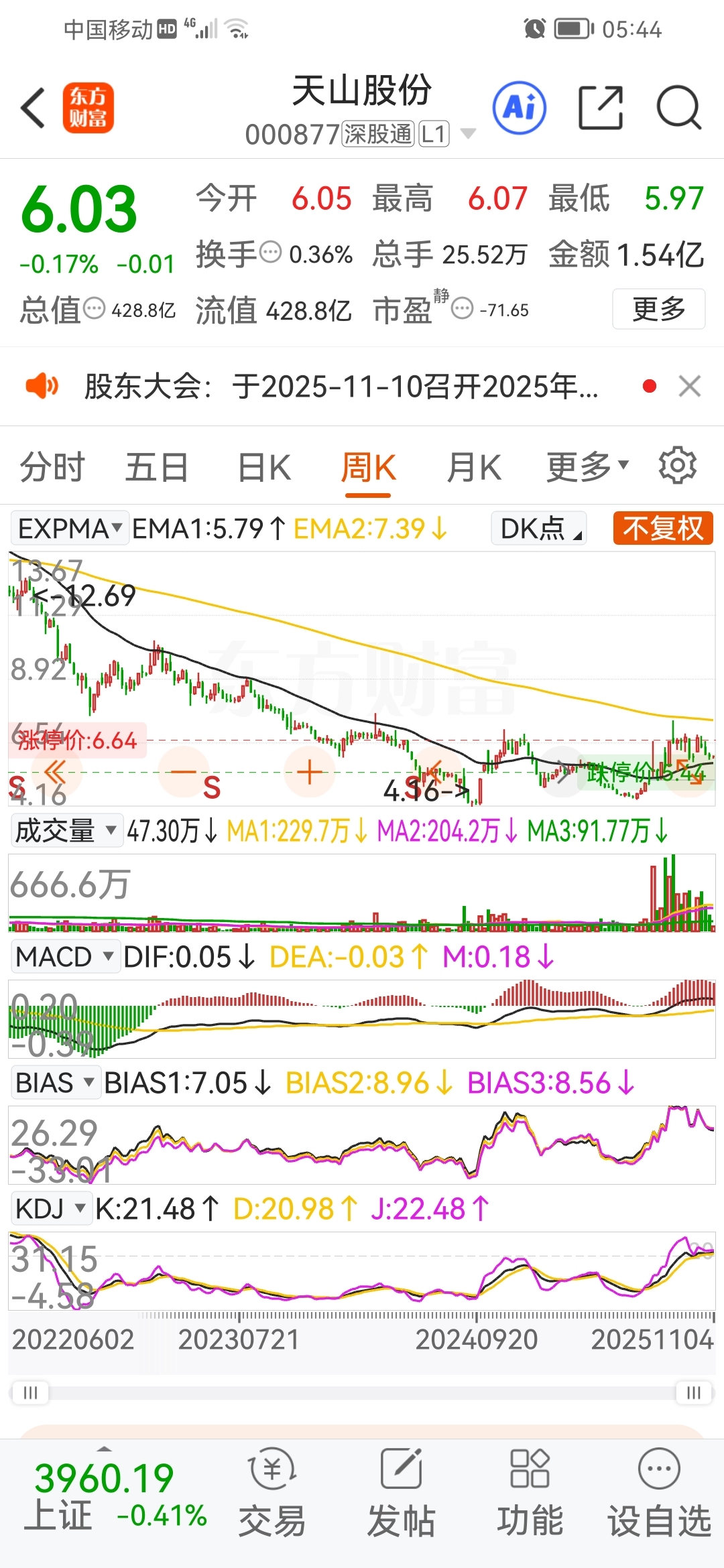 $天山股份(SZ000877)$ #复盘记录# 周线6.50以下