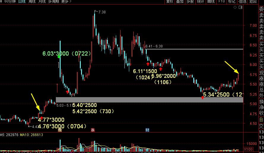 红色箭头处为左侧买入。黄色箭头为右侧买入(比较好的介入点,不加还等什么时候)