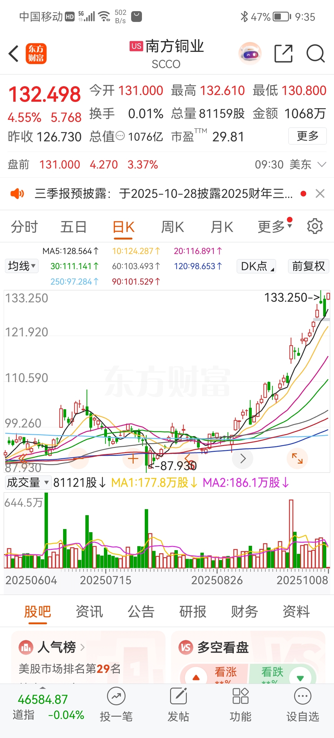 $云南铜业(SZ000878)$ 看美股南方铜业!威武!