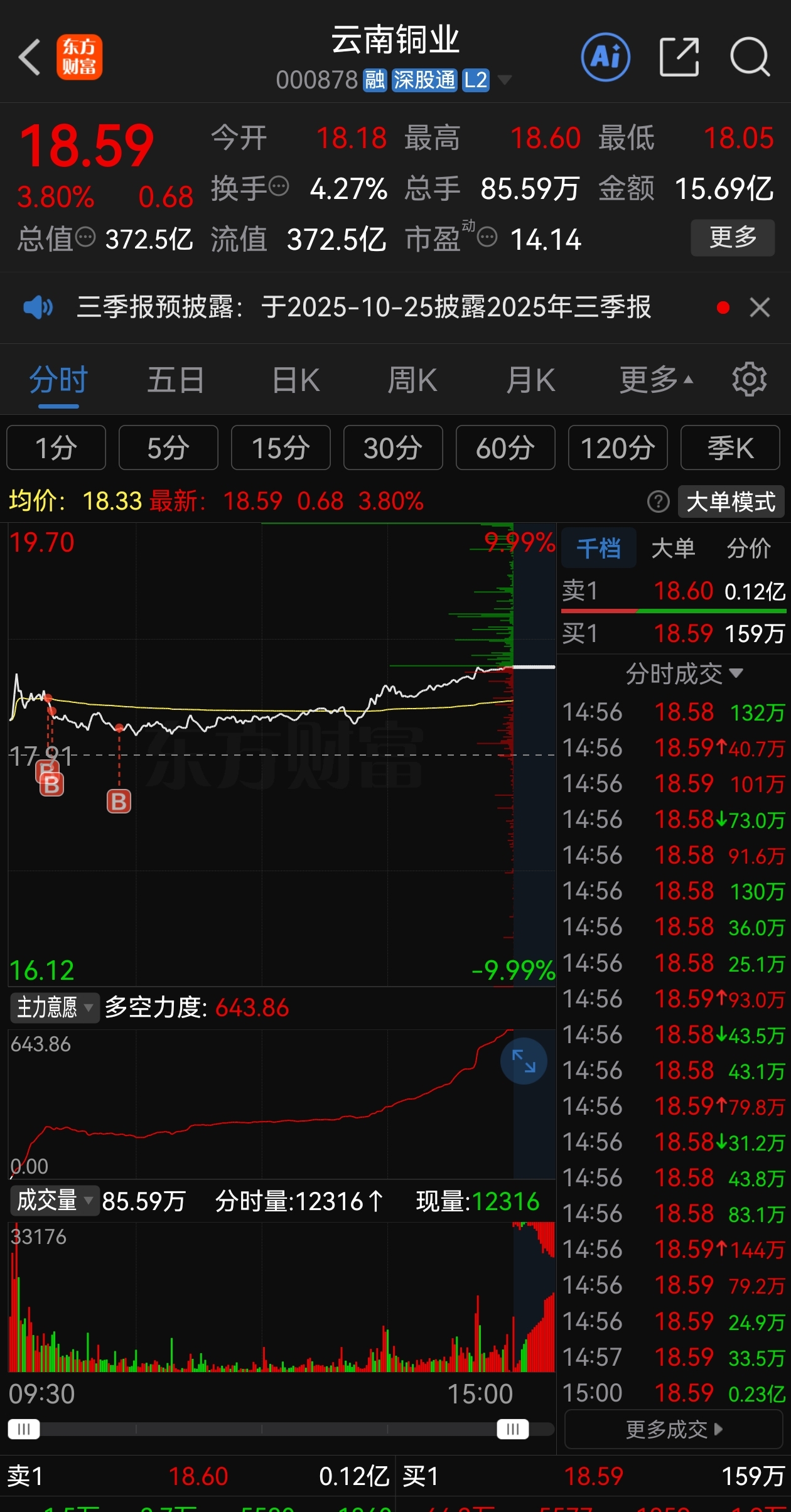 $云南铜业(SZ000878)$ 今天出预报,我又回来了,买买赌第三季度业绩超预期!