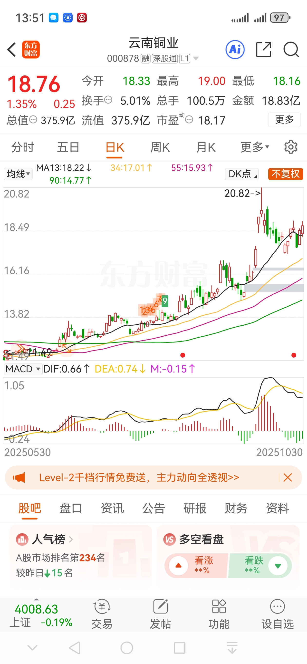 $云南铜业(SZ000878)$ 江铜、西矿、洛钼,都出现顶背离。云铜,继续做多,风险越来越大。