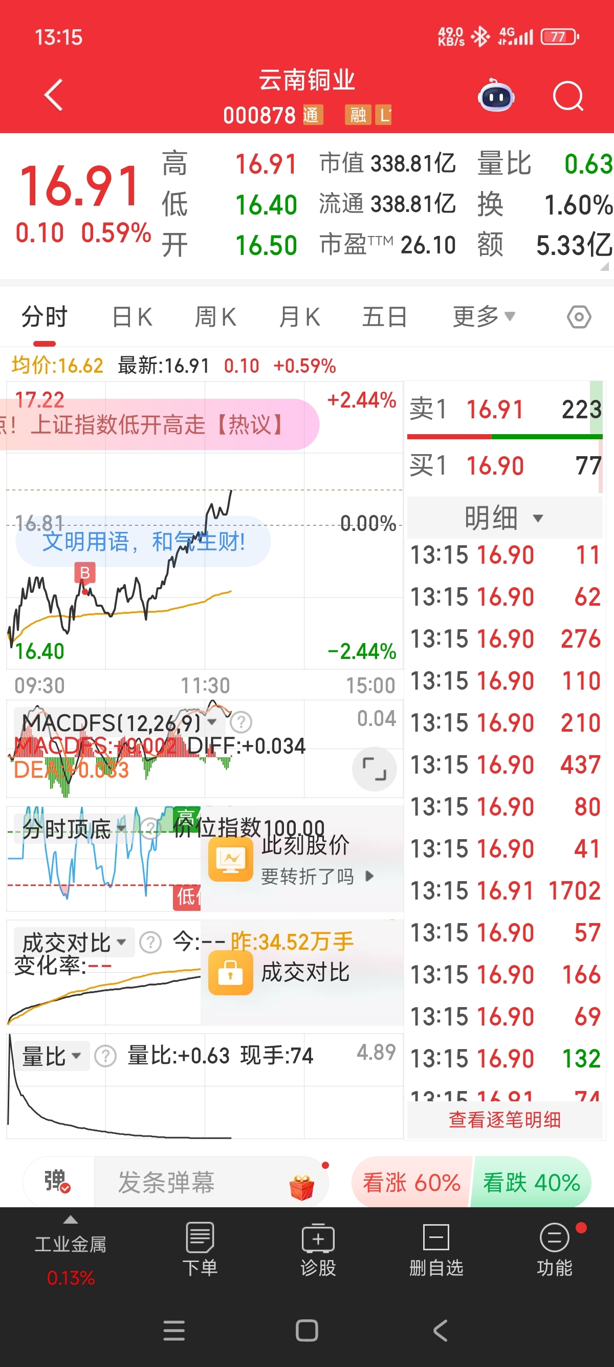 $云南铜业(SZ000878)$ 全仓了随便跌吧
