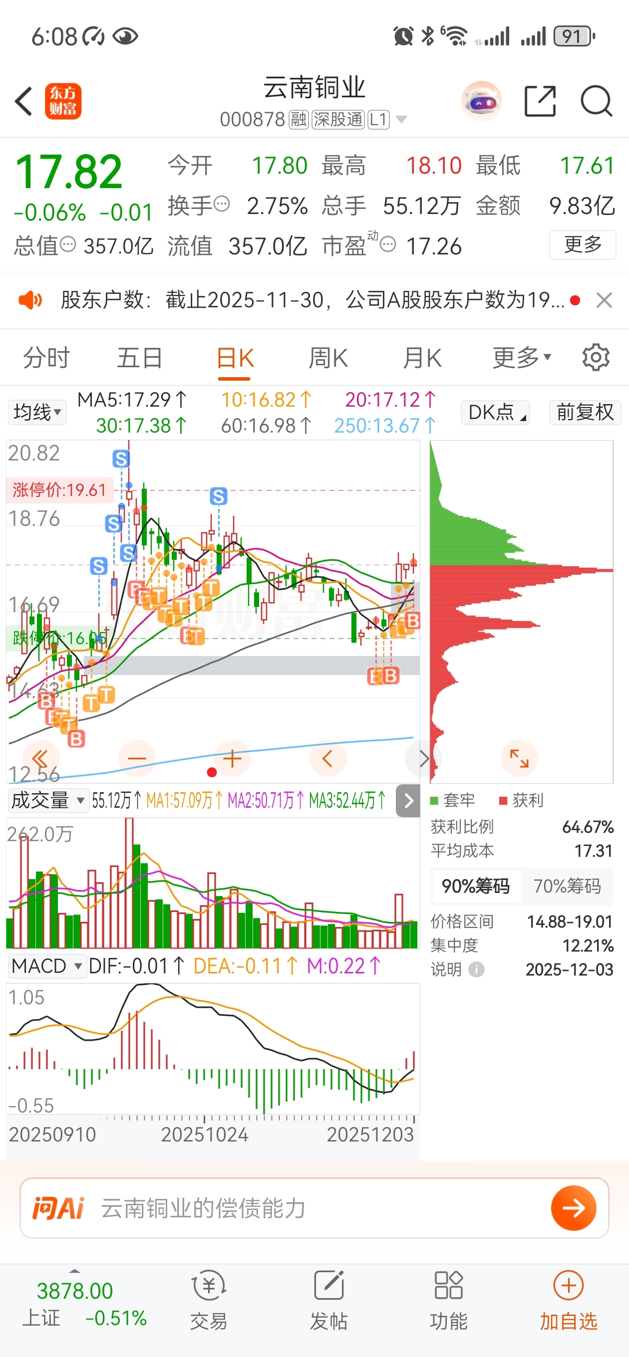 $云南铜业(SZ000878)$ 行吗?明天还能压得住?