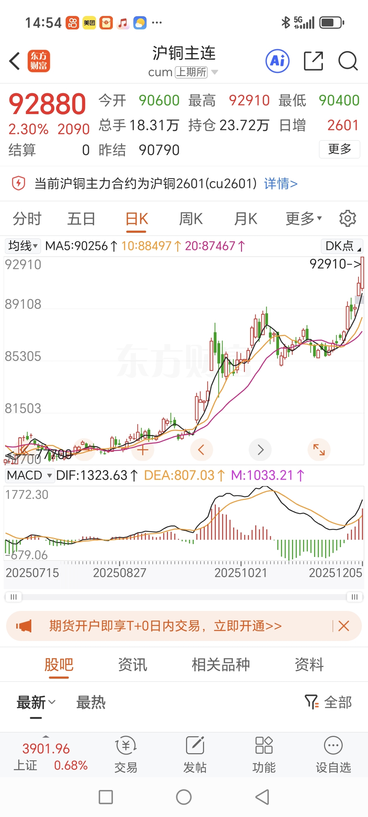 $云南铜业(SZ000878)$ 铜期货交易大升趋势