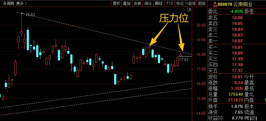 $云南铜业(SZ000878)$ 近期趋势走得不错,接下来重点关注头上趋势线压力能否带量突破,如果能就大概率近期的调整就基本完结了,后面看继续拉升冲击高点。如果压力位不能突破,这里就需要继续消耗时间应对,可以把上周低吸部分高抛作差。#复盘记录# #炒股日记#