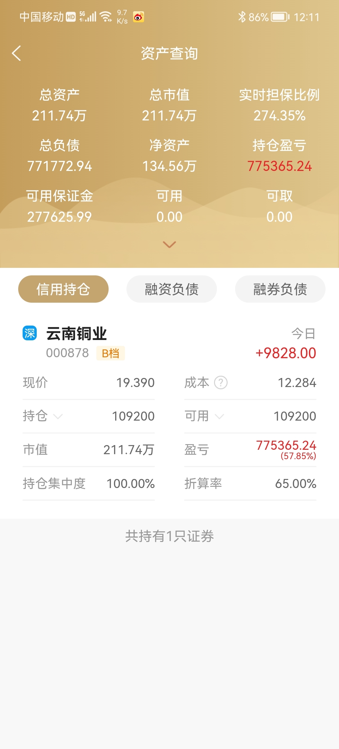 $云南铜业(SZ000878)$ 什么也不说了,看帐户!