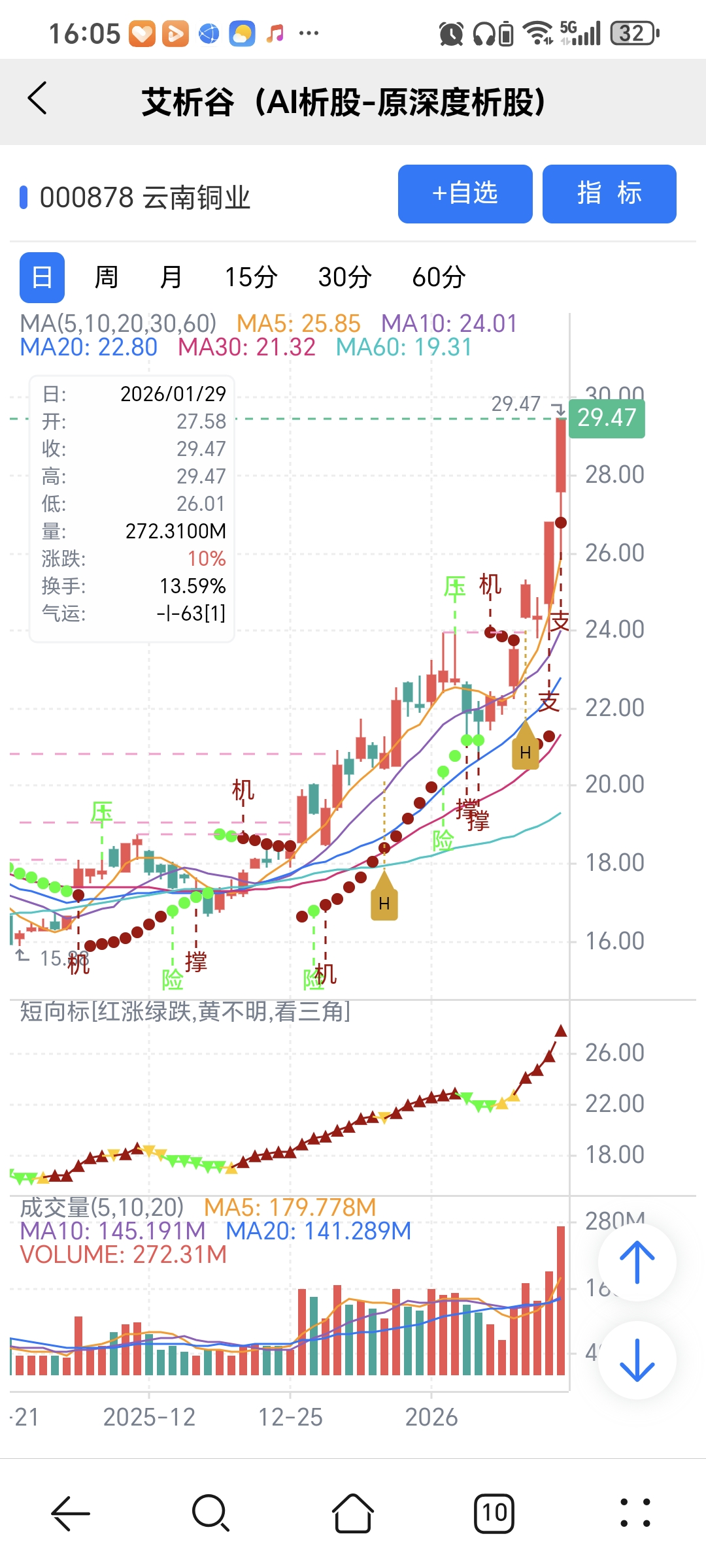 AI模型选股,量化指标识别关键点,简单技术分析确定买卖点,结合量化和人工综合运用,才能有优势。云南铜业