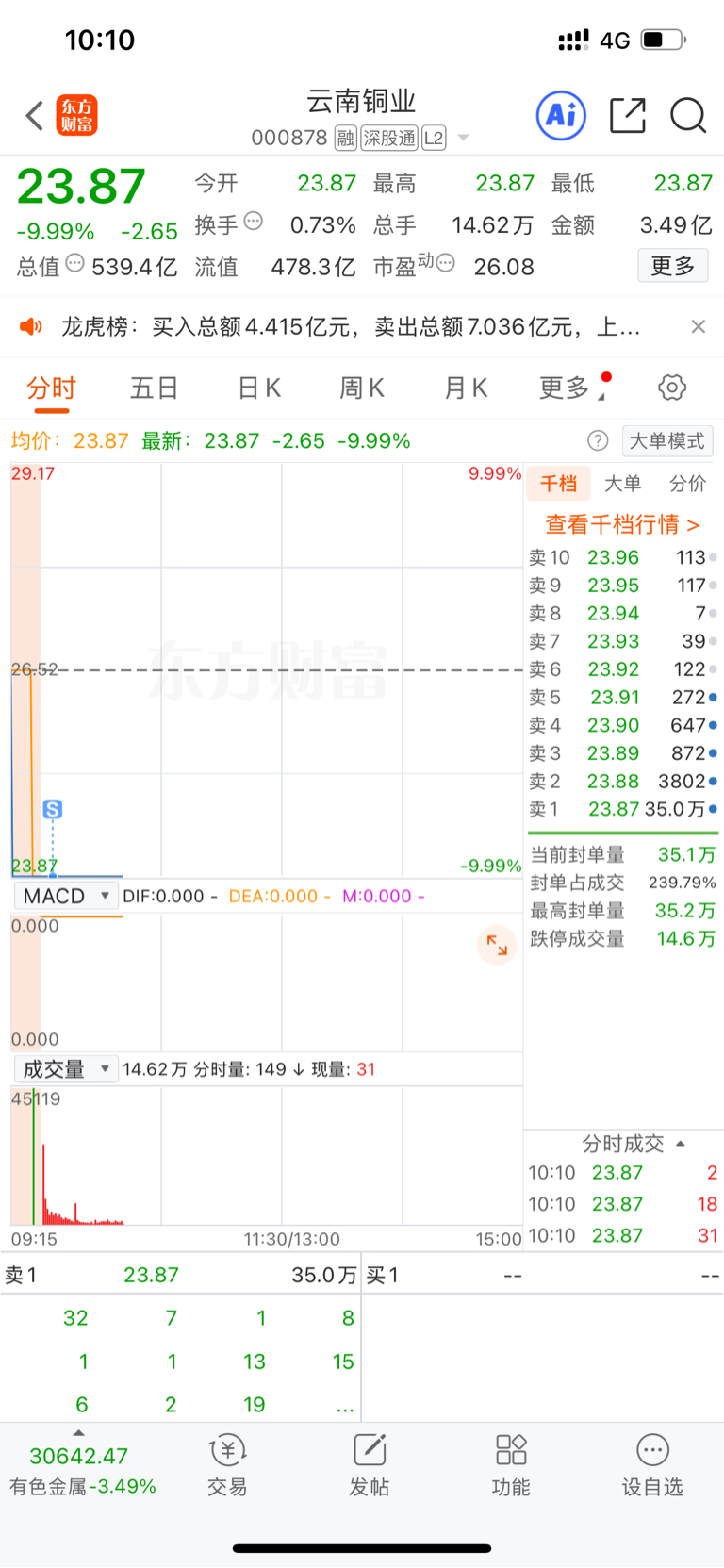 $云南铜业(SZ000878)$ 周五卖了电工到这当矿工,结果今天电工涨停,矿工跌停,真是吐了
