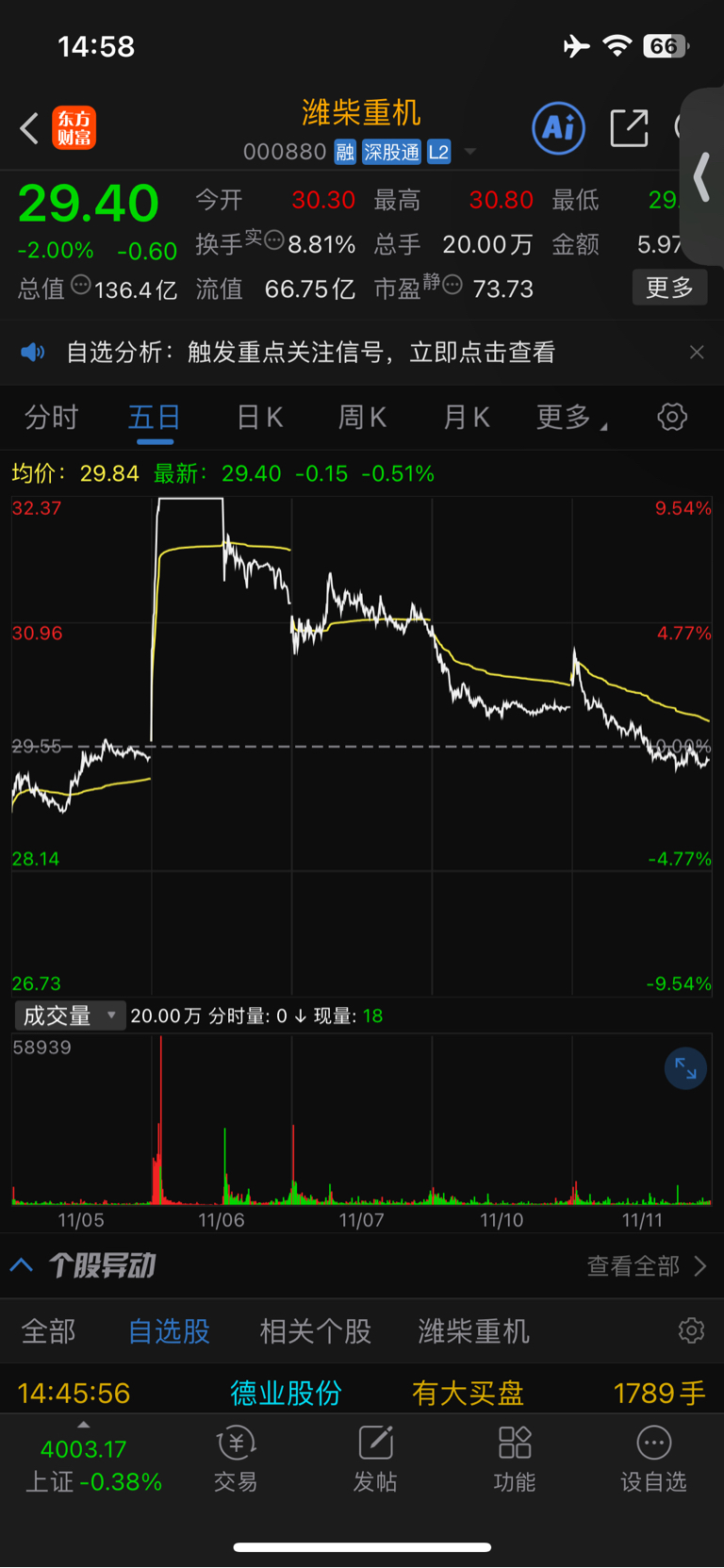 $潍柴重机(SZ000880)$ 这走势,下跌趋势